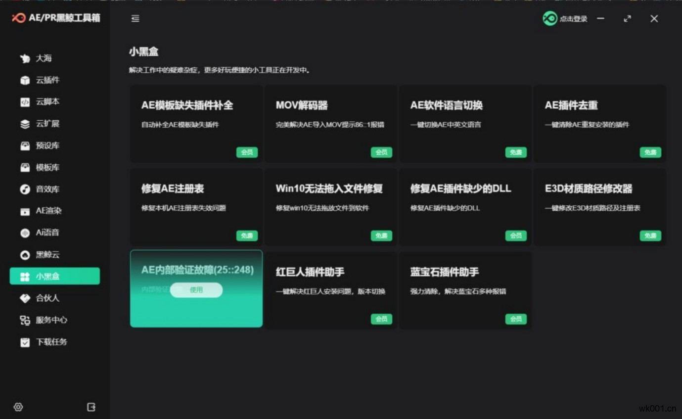 5-小黑盒,解决AE各种疑难杂症,如:插件缺失、效果缺失、mov解码错误、语言切换、AE其他报错等。